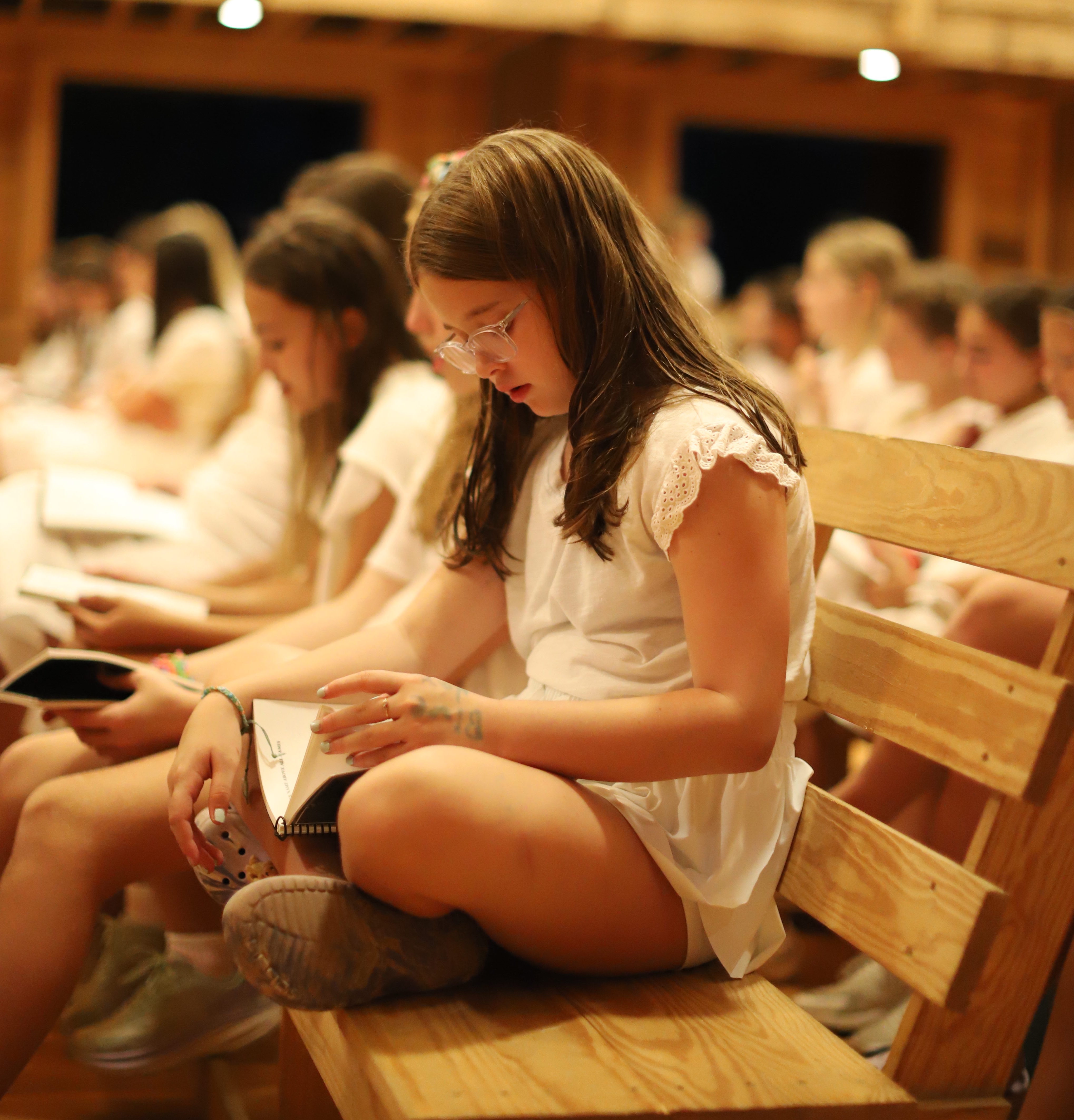 This Protestant worship service is led by Camp DeSoto Staff, the choir is made up of a different age-group each week, and the oldest girls at Camp serve as ushers. We take up an offering of quarters (which girls withdraw from their accounts each Saturday) to give to an organization or person who working to love God’s people in a specific and tangible way. Worship at Camp DeSoto is designed to be an experience that girls can easily understand and comfortably participate in. We want girls to begin to experience worship on Sunday mornings as an intentional acknowledgment, as a community, of the love we’ve been given, the need we have for God’s grace, and the truth of God’s word.